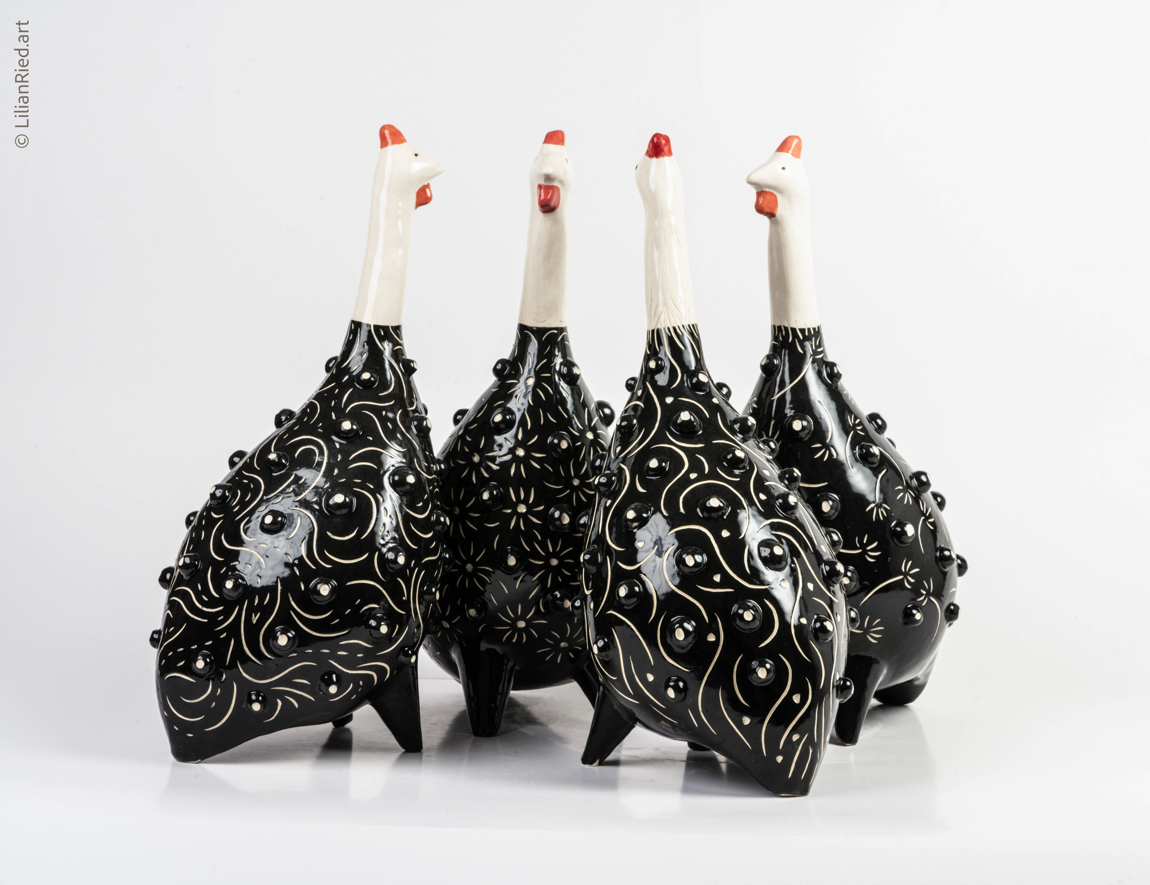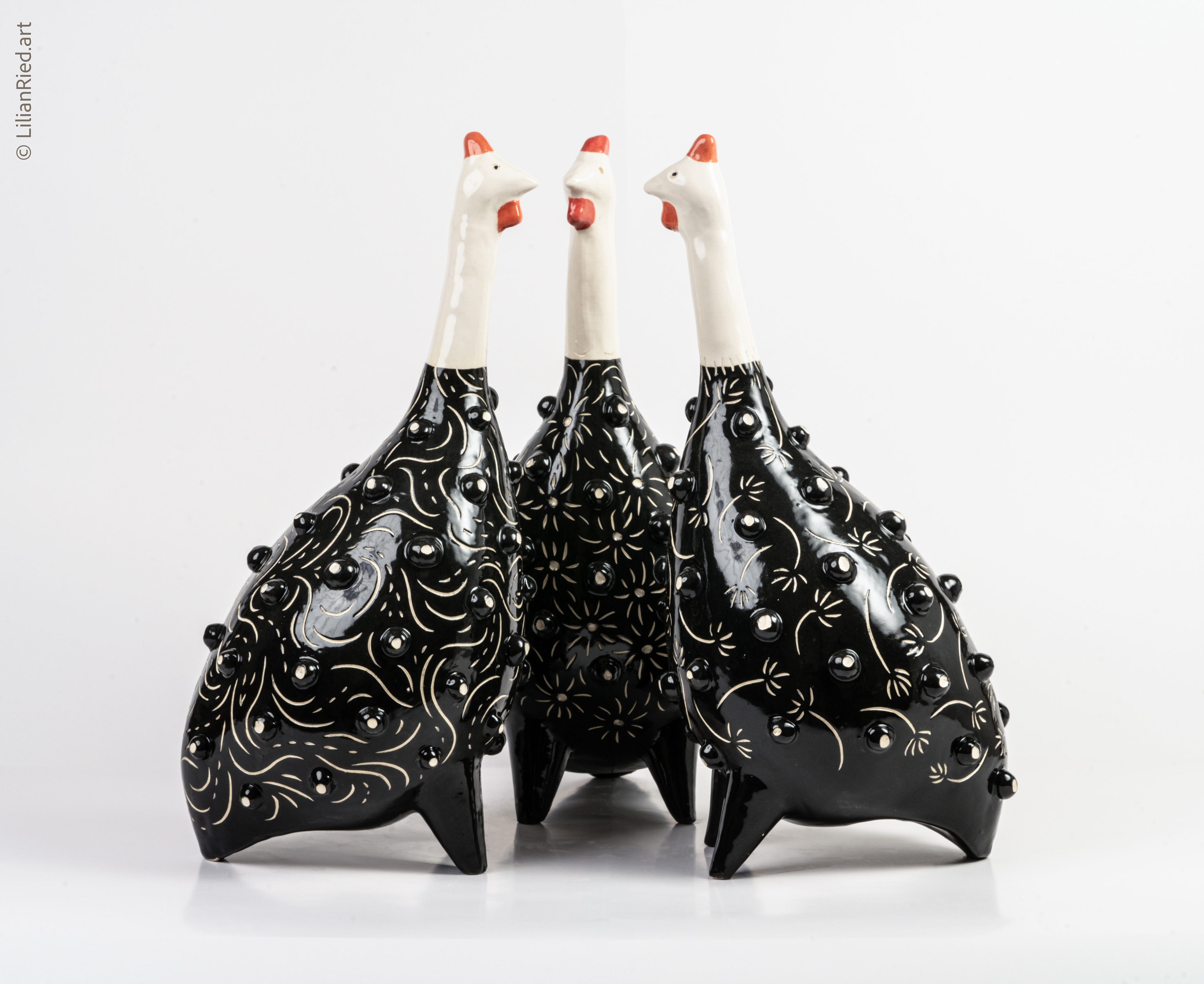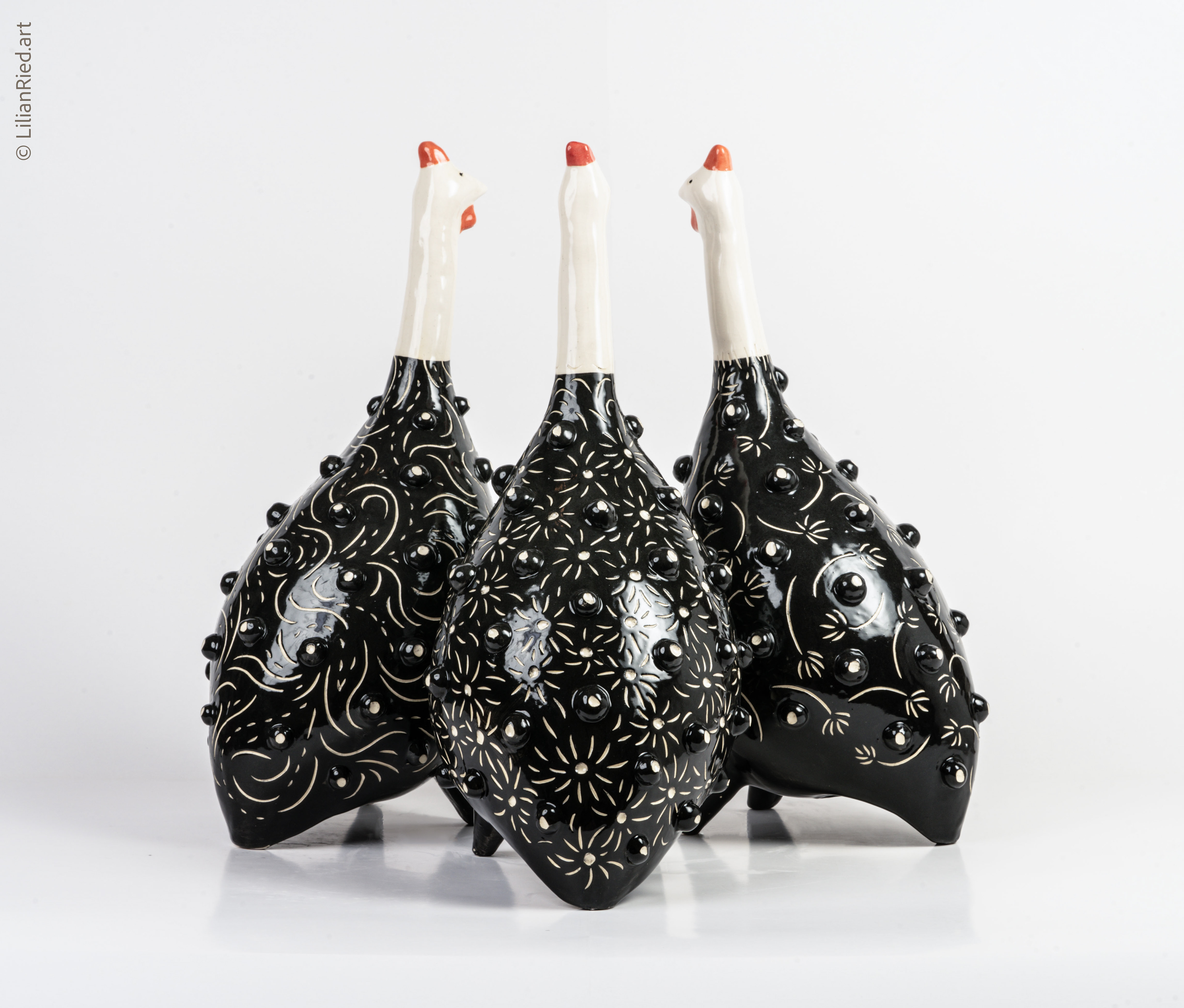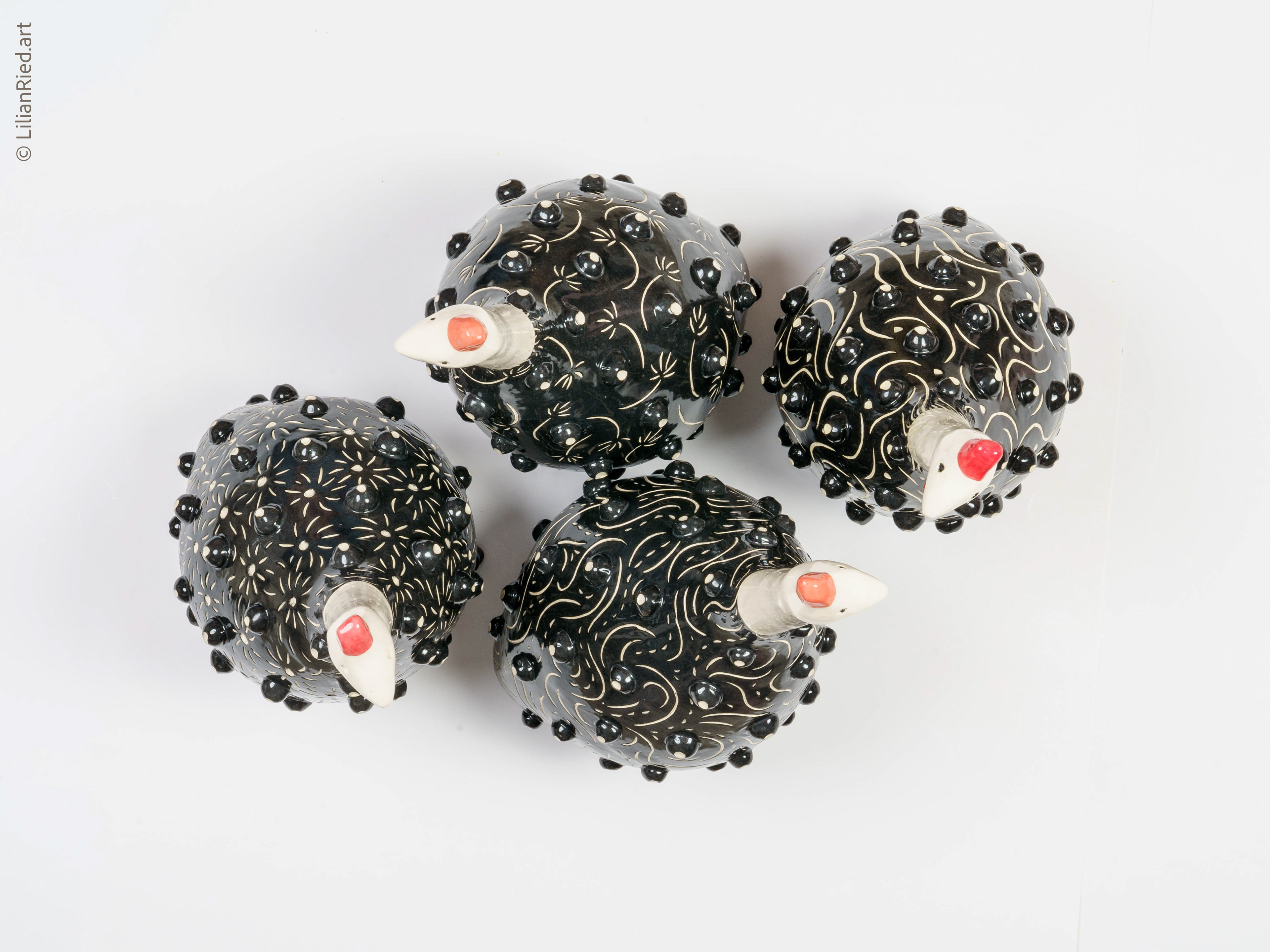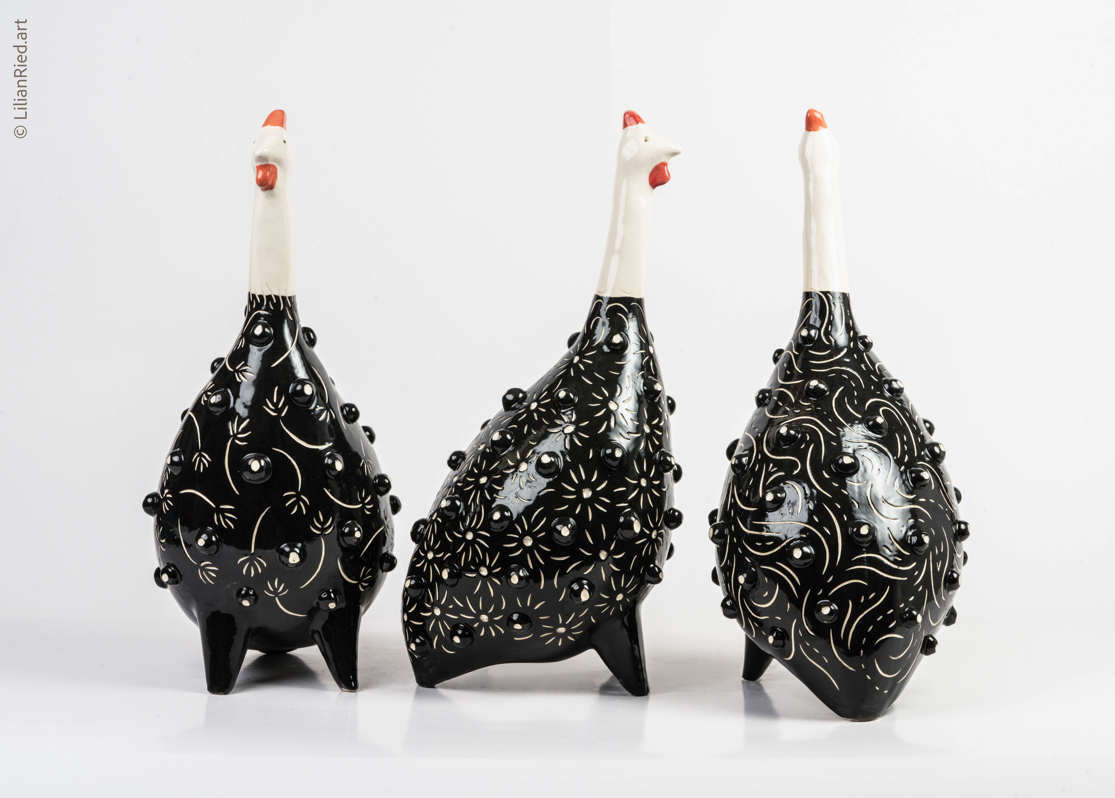 Earthenware with underglaze, glaze and sgraffito finishes.