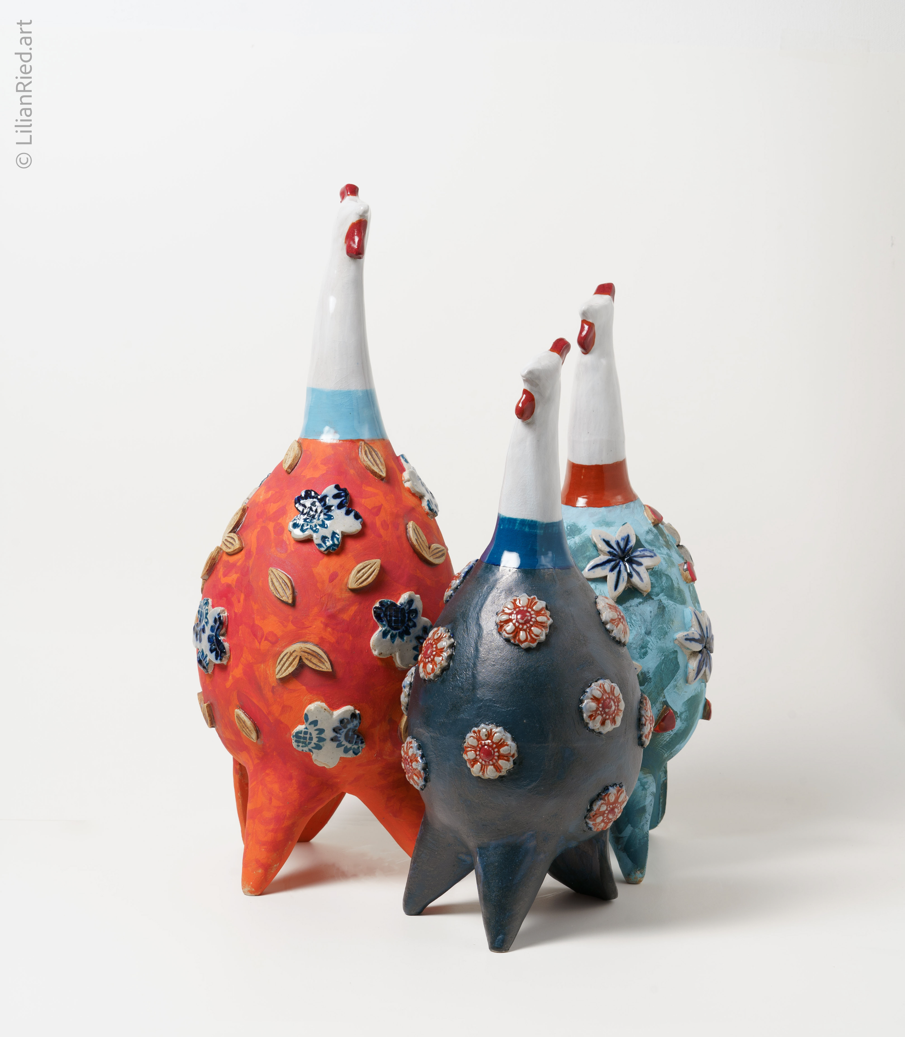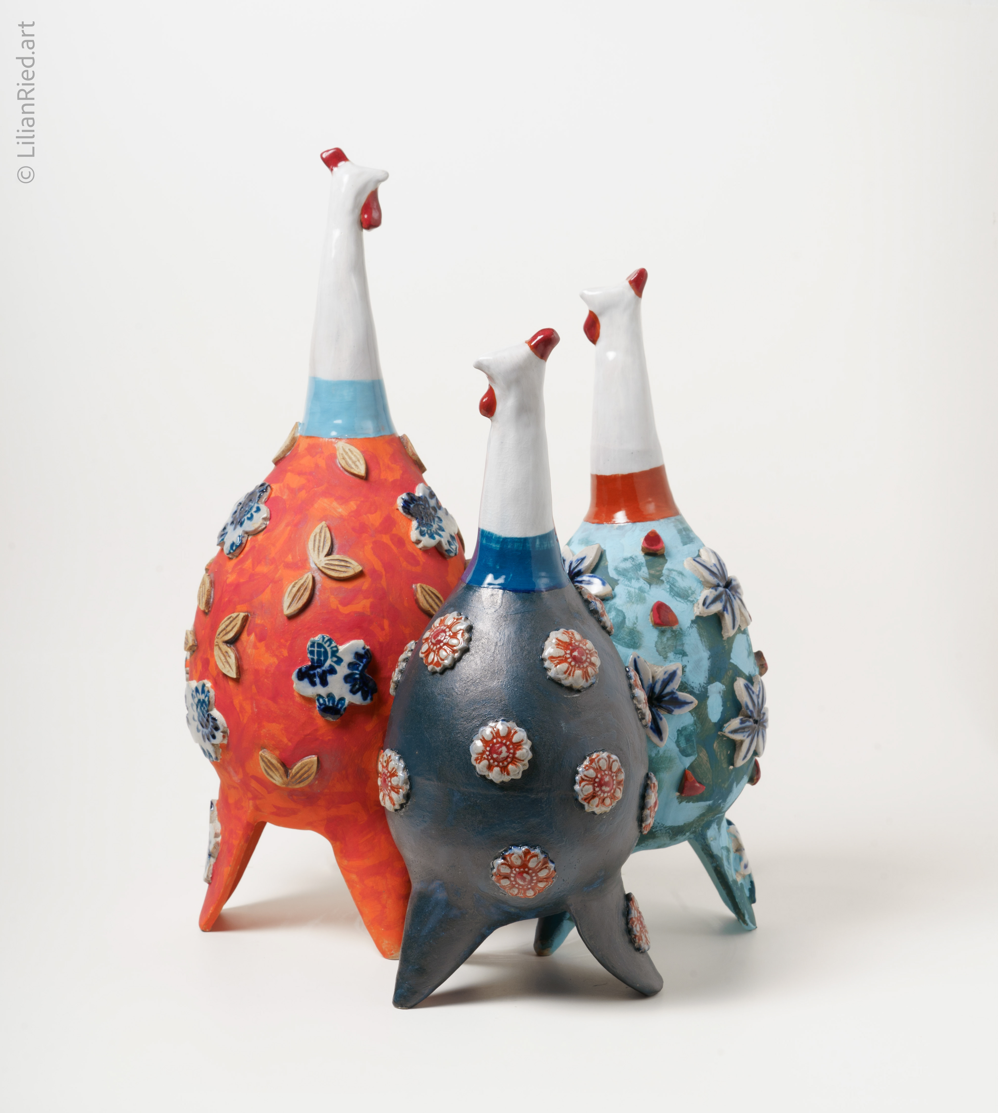 Dimensions: (big hen) 16" x 6.5" x 6.5", (medium) 12.5" x 5" x 5", (small) 11.5" x 5" x 5"